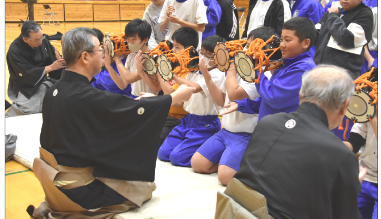 千曲市内小学校能楽教室 伝統芸能の世界を体験
