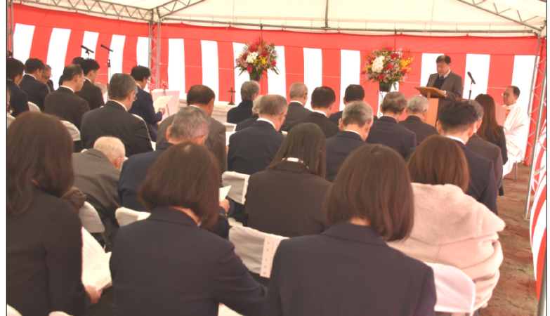 清泉大学 建設現場で「祝福式」を開催 正式名称「ハビエル館」着工始動