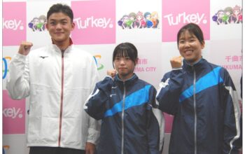 会見には山蔦監督(左)三笠キャプテン(右)も同席