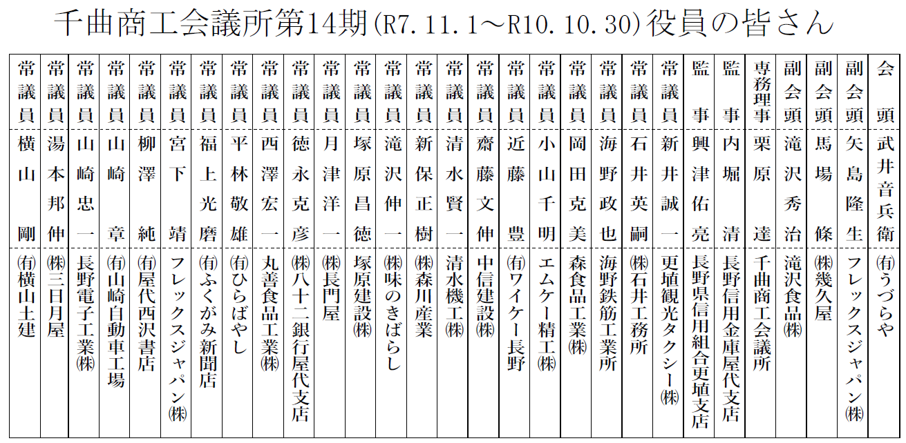 千曲商工会議所第14期(R7.11.1~R10.10.30)役員の皆さん