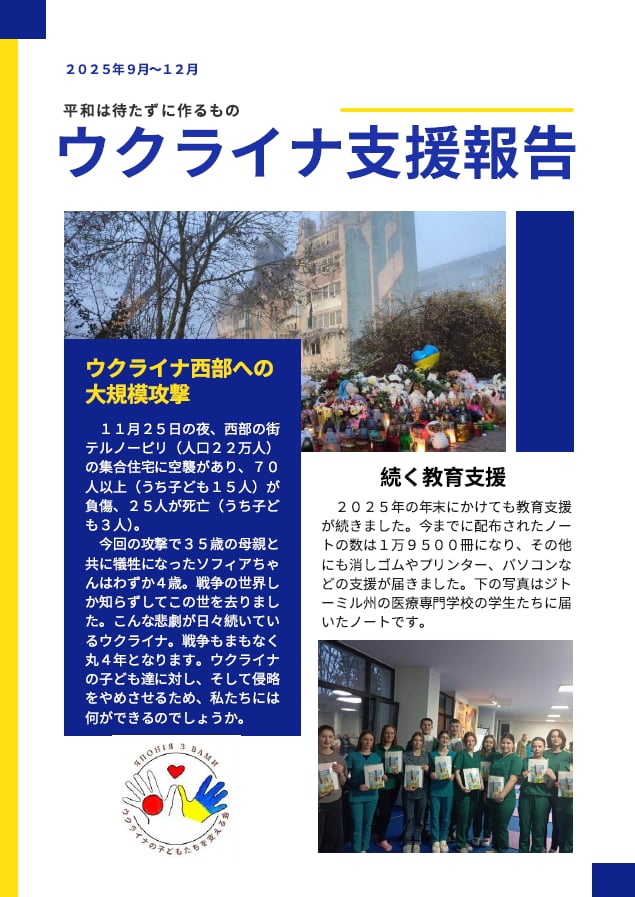 「平和を希求し、子どもたちを救う努力をするのが大人の役割だ」と指摘した。ポーランドに避難する人も多くいるが、母国語を話せない子どもが存在する。坂本さんは「ポーランドでウクライナの子どもたちの精神的な居場所を作りたい。物資だけでなく精神的な支援も必要」と訴えた。