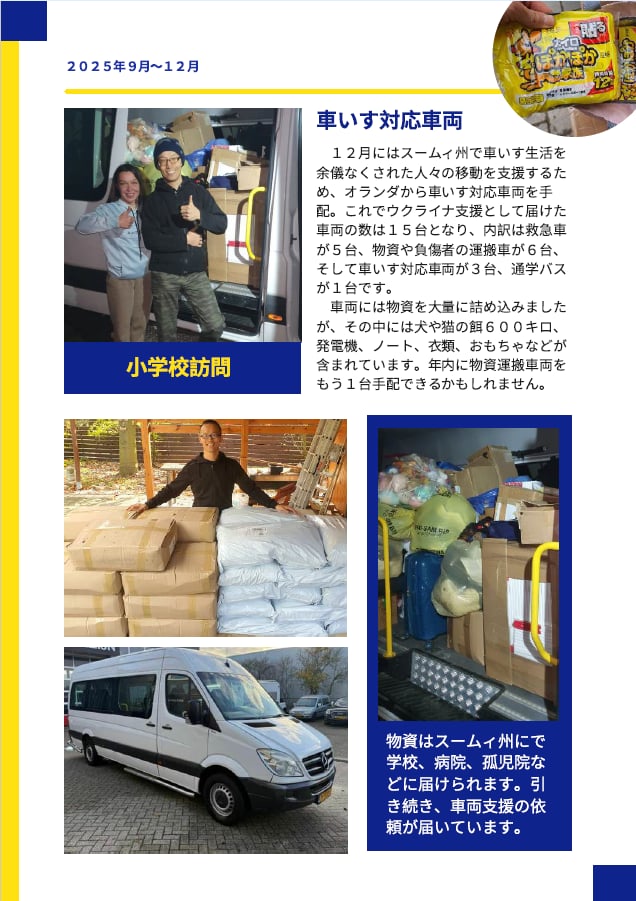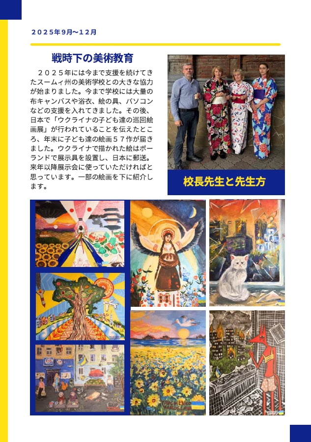坂本龍太朗さんは1月6日に千曲市役所を表敬訪問し、小川市長にこれまでの千曲市からの支援への感謝とウクライナの現状についての報告を行った。坂本さんは既に4年が経過したウクライナ戦争の現状について「学校に行きたくても行けない子どもたちがいっぱいいる。決して他人事ではなく千曲市の子どもたちにも自分事として考えてもらいたい」と訴えた。また、ウクライナの人たちから贈られた感謝の思いを表す旗を小川市長に手渡した。