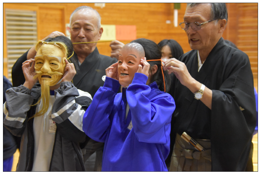 10月29日と30日、市内の小学校(八幡小、東小、更級小、治田小)で日本の伝統芸能・能を学ぶ能楽教室が開かれた。指導を行ったのは重要無形文化財保持者の観世流能楽師・松木千俊さんと市内で能楽の指導を行う松の会・千曲市謡曲連合会の皆さん。各校とも6年生が対象で、児童たちは能の紹介動画を観た後、実際に小鼓を打ってみたり、若女や般若などの面(おもて)を着ける体験をした。その後、能の演目「猩々」を手本に謡(うたい)の稽古に挑戦。声の出し方や抑揚の付け方を指導してもらった。今年の能楽教室は12月15日に戸倉小学校でも実施する予定。