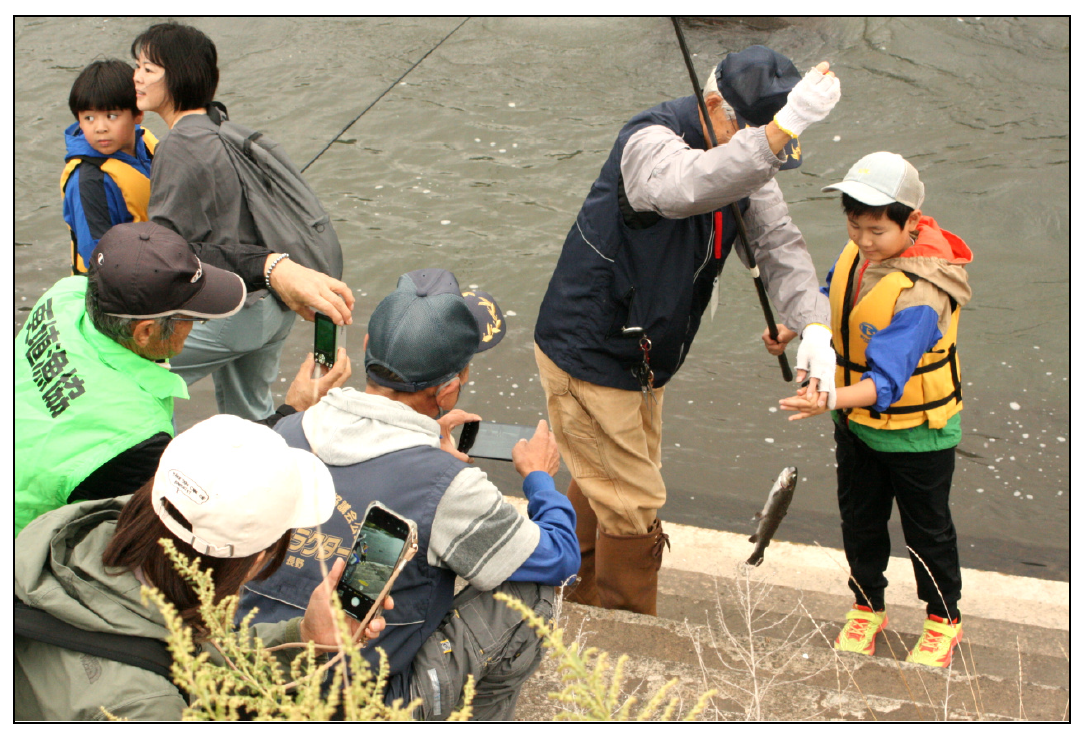 更埴漁業協同組合によるとこの日の水温は16度から17度とニジマス釣りには好条件で、開始早々ニジマスを釣り上げる子どもたちもいた。釣果を競う大会ではなく、あくまで釣り教室のため釣ったニジマスは全てキャッチ&リリース。秋風の強いやや肌寒い気候だったが、子どもたちの喜ぶ歓声が河川敷に響いていた。
