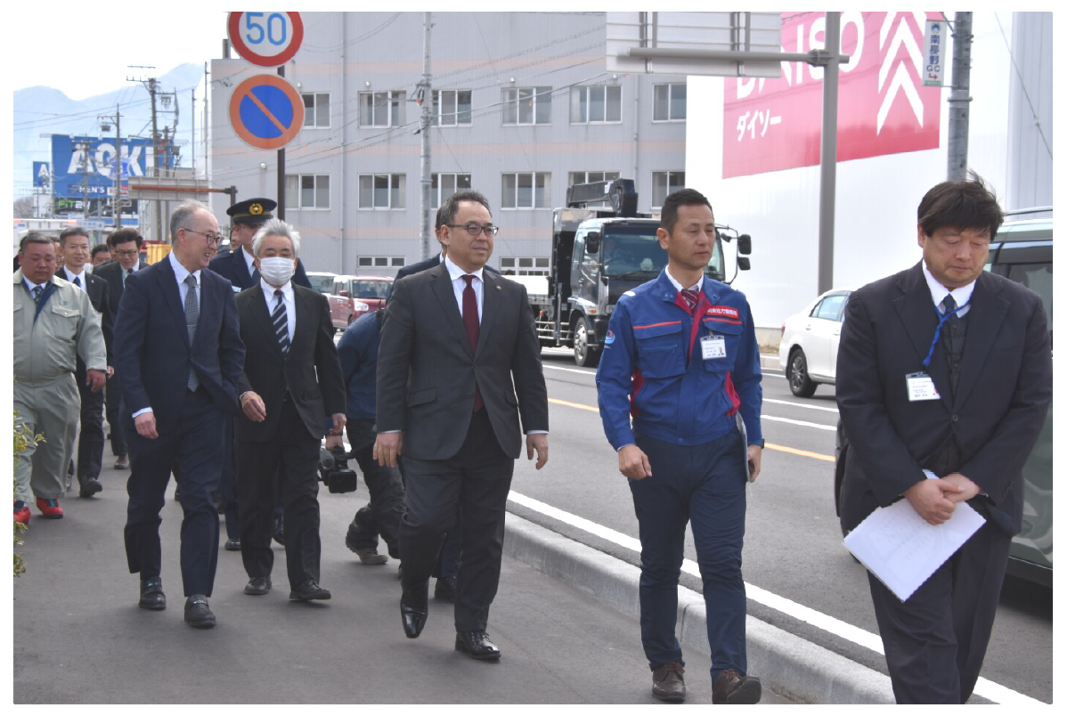 国道18号杭瀬下交差点 開通記念セレモニー 右折レーンと歩道が完成