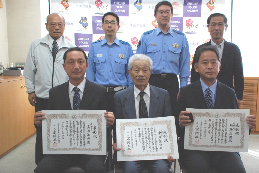 同日、千曲署では交通栄誉章「緑十字銅章」の伝達式を実施した(交通安全功労者・優良安全運転管理者・優良運転者)。受章者は以下の通り。中條聖命さん(森)、柄澤正樹さん(長野市茂菅・㈱ニュースト勤務)、髙木敏行さん(八幡・信濃陸送㈱勤務)。他1名欠席。