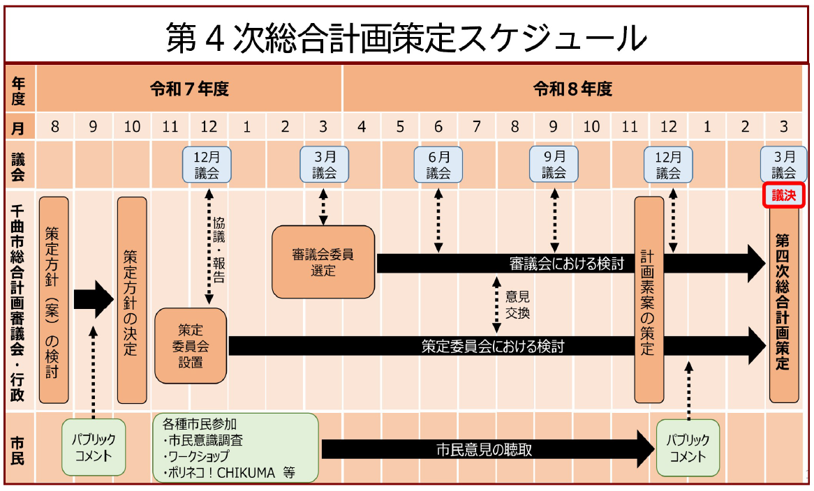 - ・千曲市議会~策定された計画案を審議し市の計画として決定