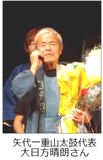 公演終了後には舞台上で代表の大日方晴朗さんに花束が渡された。大日方さんは活動休止に当たり「千曲市を太鼓の町にしたいと考えてやって来た。太鼓を通じて皆が心を通い合わせるようになれば嬉しい」と語った。