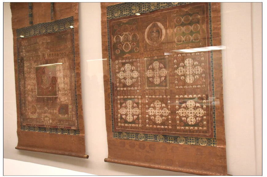 (右写真)長野県宝 絹本著色両界曼荼羅図(飯山市 菩提院蔵)