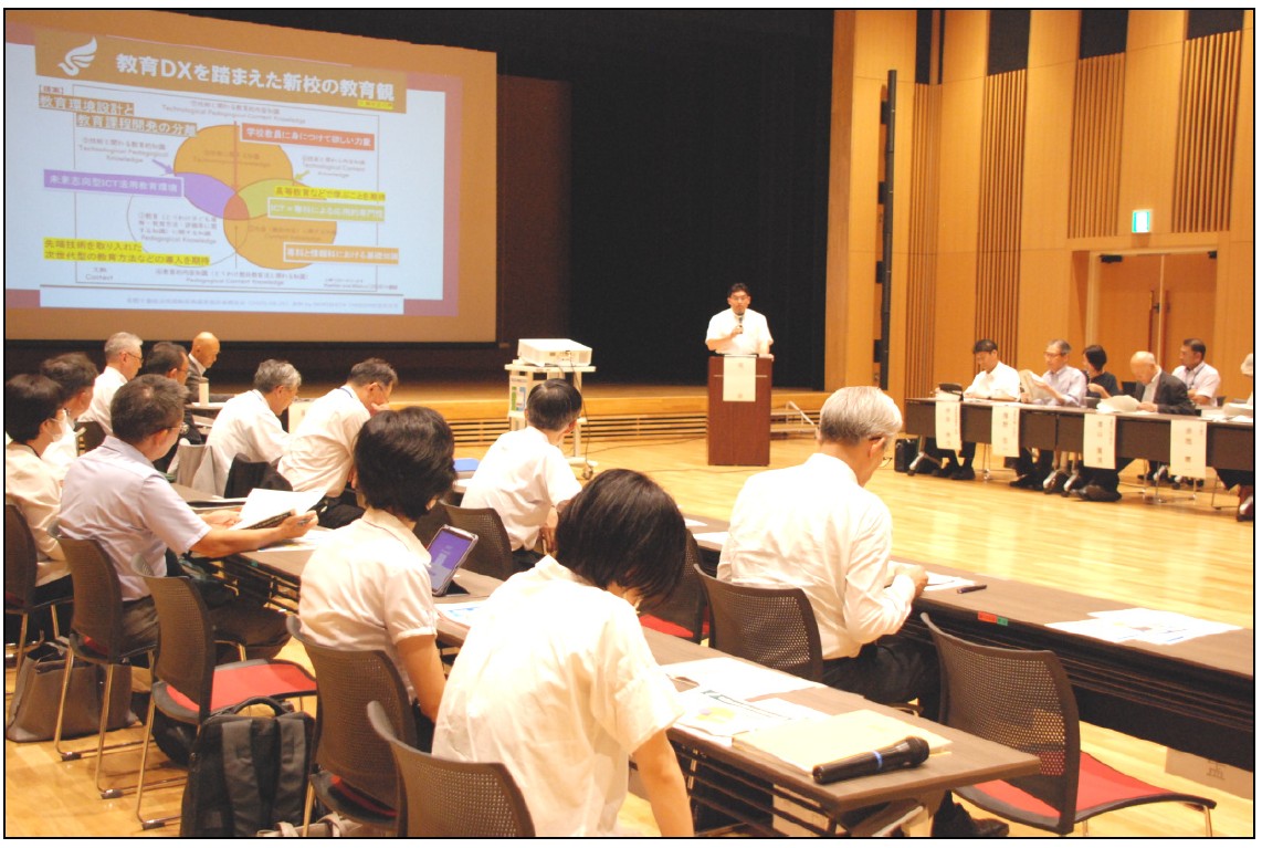旧第4通学区3校(屋代南高校、松代高校、更級農業高校)の第8回千曲総合技術新校再編実施計画懇話会が8月25日、篠ノ井交流センターで開催された。初めに事務局から新しい学びのイメージの策定スケジュールが提示され、前回5月の懇話会の後、7月24日に信州大学の森下孟准教授が3校の生徒と意見交換したことなどが説明された。その後、DXに関する学びについての意見交換に移り、茨城県笠間市の県立IT未来高等学校(令和5年開校)への視察内容を報告。これらを受けて新校の「学びのイメージ・育てたい生徒像・目指す学校像」の事務局原案が提示され「農業×商業×家庭科」という基本コンセプトを懇話会の構成員に説明した(写真)。3校の生徒代表も意見発表を行った。