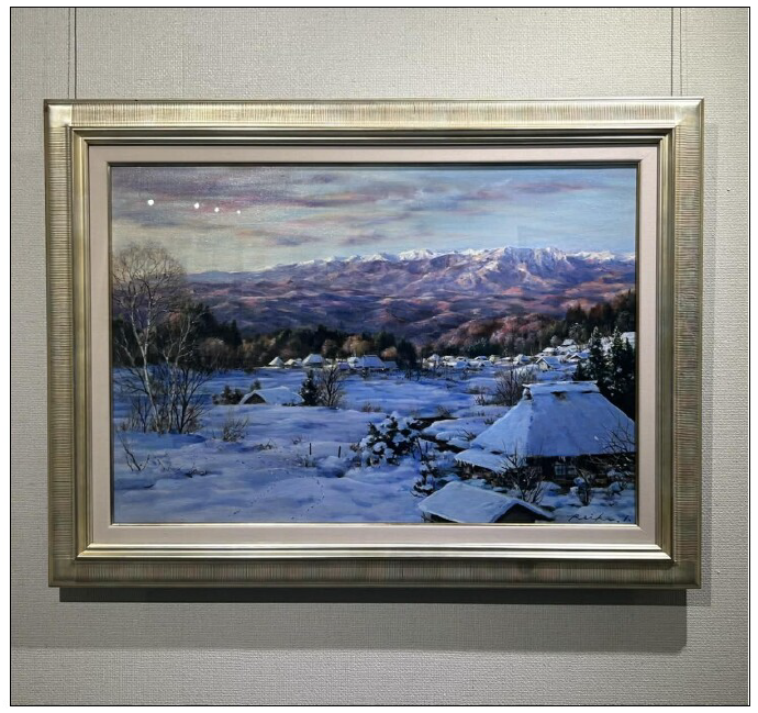 最後に、私のお気に入りの作品を紹介します。倉島玲子さんの「朝陽の村」です。雪の冷たさと、差し込み始める陽の温かさが同時に伝わってくる作品でした。