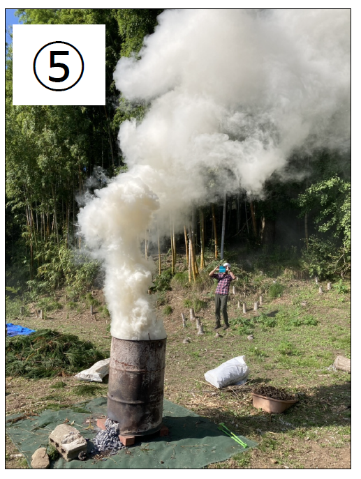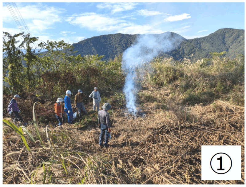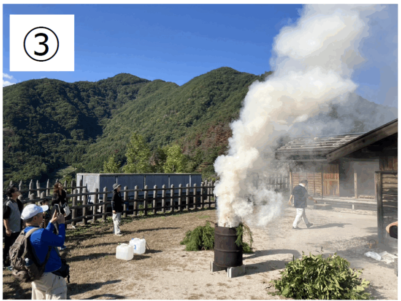 ①~⑤の順番で着火 当日は晴天で各山城の狼煙が良く確認できた