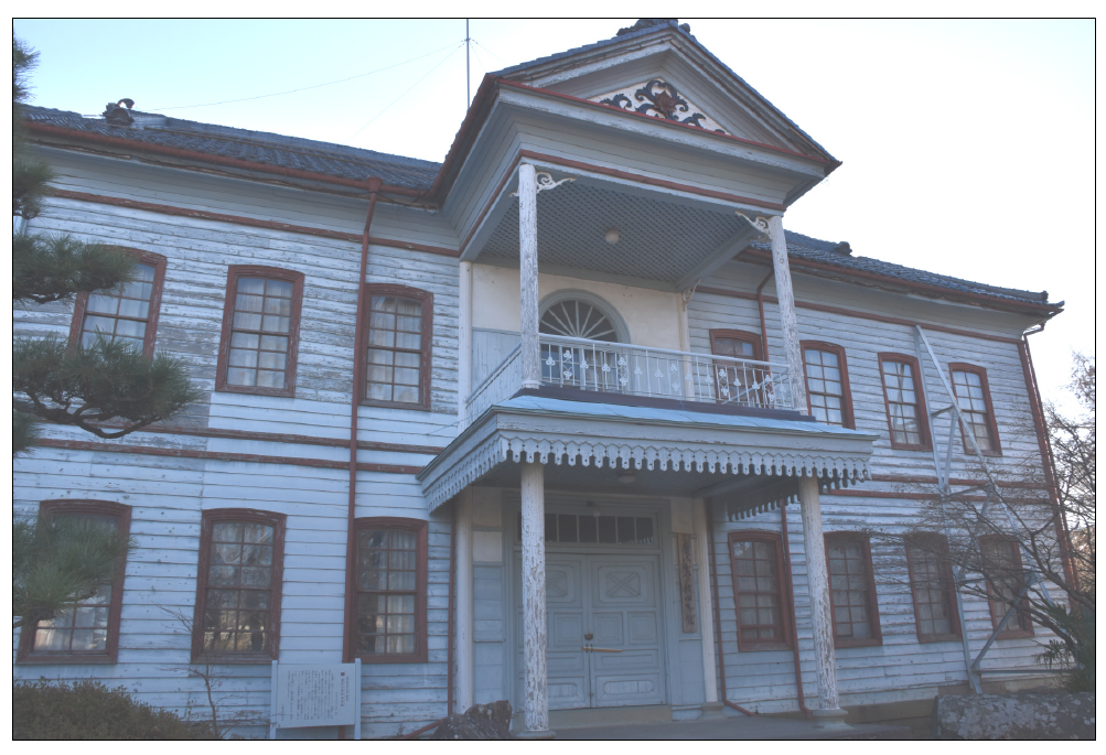 この旧本館の特色は文明開化を象徴する「擬洋風建築」で、日本古来の建築技法をベースに西洋建築の特徴を取り入れた明治期独特のもの。正面玄関には車寄せが突き出し、その上にはベランダが設けられている。外壁は下目板張りというアメリカの開拓者の建築様式を取り入れた。