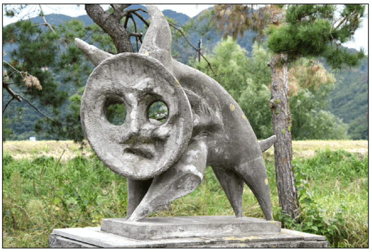 かつての旧更埴市では、昭和60年(1985)から62年(1987)にかけて、東京の多摩美術大学と「モニュメント制作協定」を結び、学生たちによるアート作品を市内の各地に設置しました。その後も設置は続き、平成11年までに合計61点ものモニュメントが誕生しました。