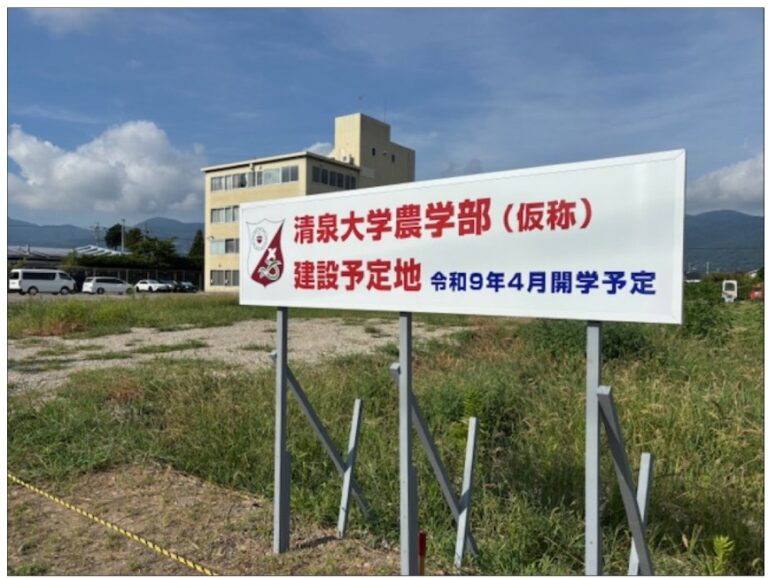 特集1 清泉大学農学部 ◆「令和9年4月開学建設予定地」の看板立つ